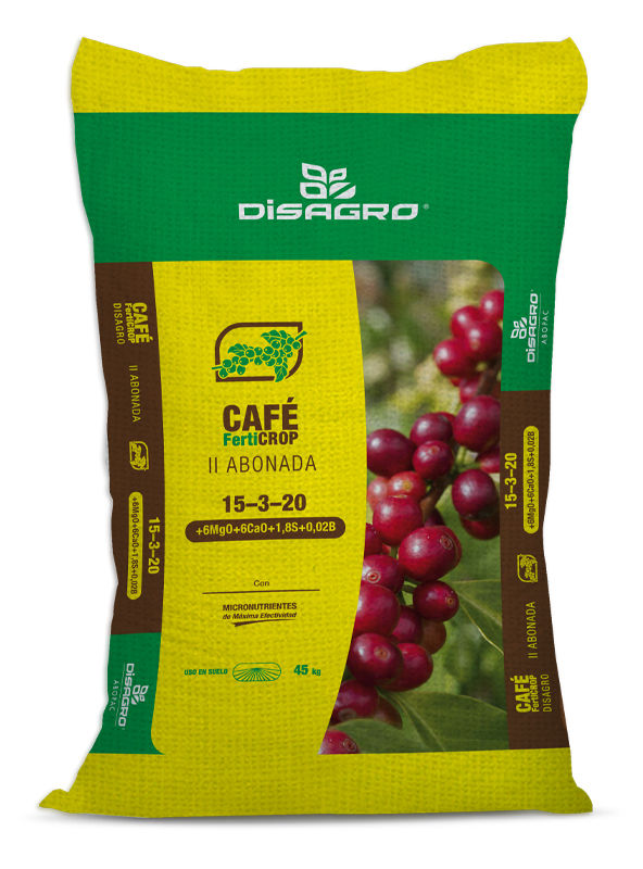 Fórmula diseñada específicamente para el cultivo de Café en la etapa de producción. ● La tecnología ELEMENTUM® permite que los microelementos presentes en este producto se distribuya uniformemente en todo el fertilizante, siendo ésta la forma más efectiva de proveer los micronutrientes a cada planta.